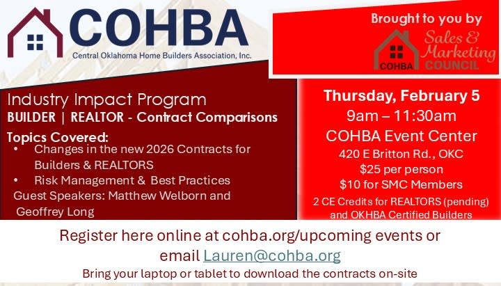 Join us to get the latest changes to the Builder & REALTOR contracts from Matthew Welborn (Rieger Sadler Joyce) and Geoffrey Long (R Pro Academy): Timelines, change orders, warranties, financing, etc.